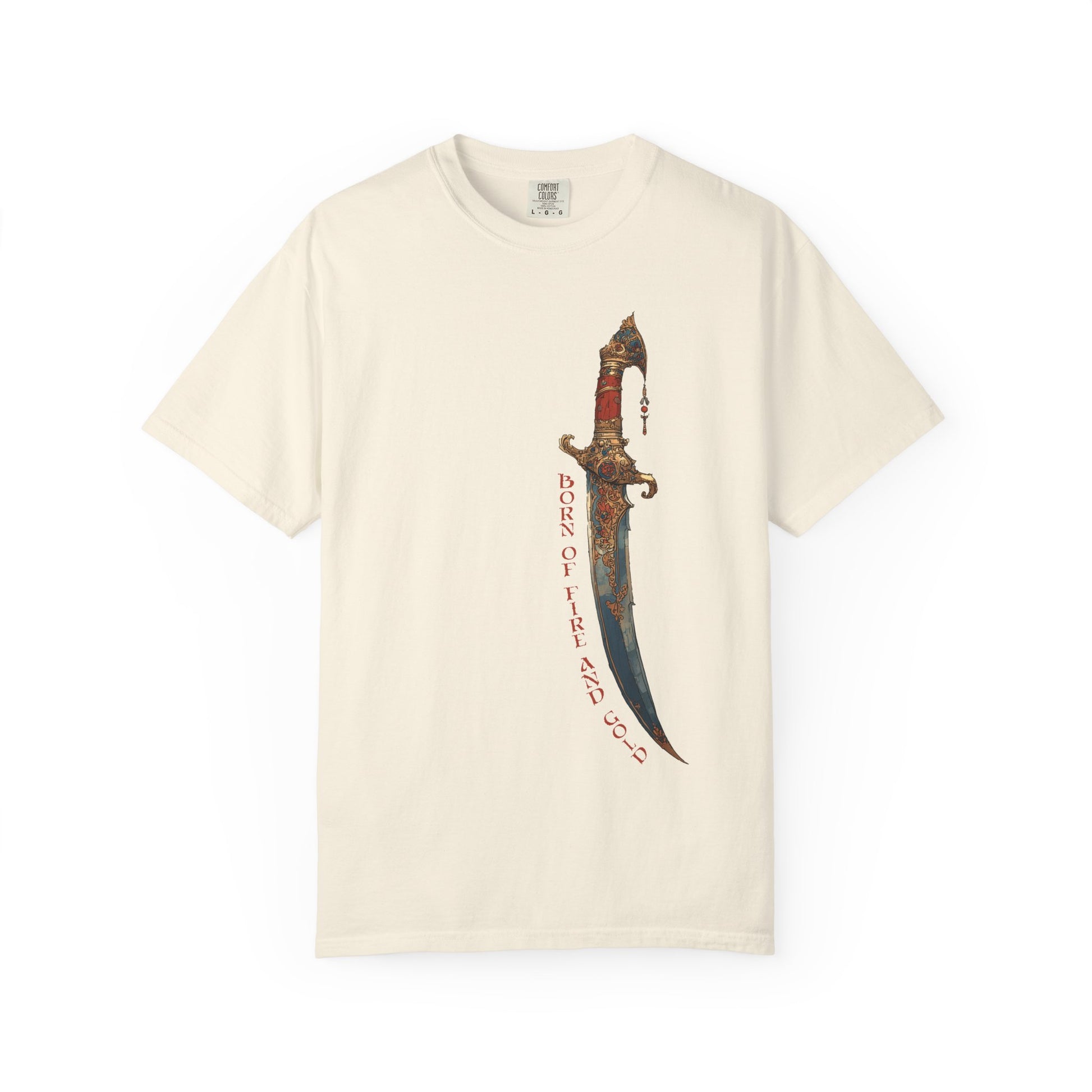 The Persian Immortal tee slices through the ordinary with its dagger design, burning with intensity and edge. This bold print mixes danger with artistry, turning an everyday canvas into a fearless statement. Streetwear that cuts sharp and stays gold.