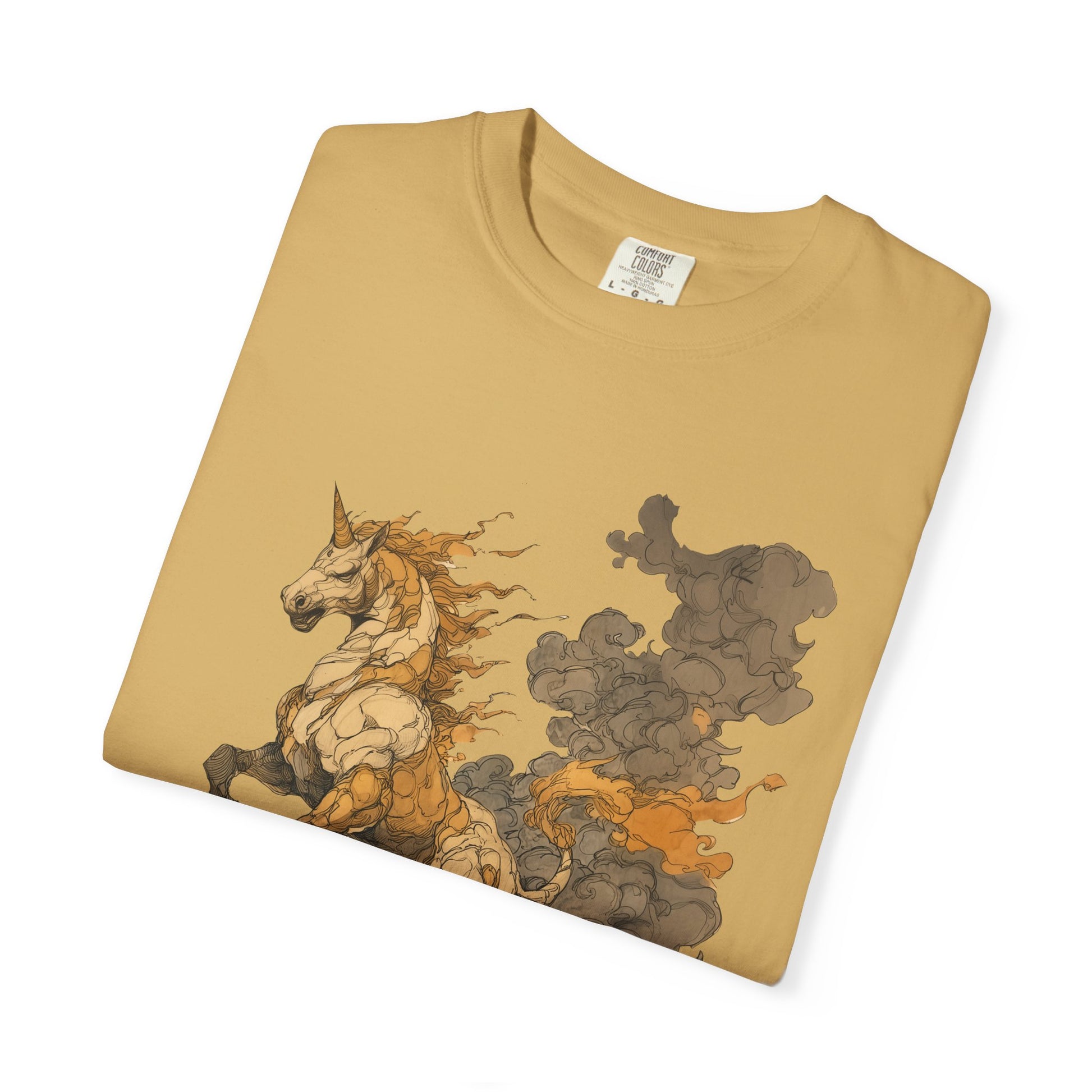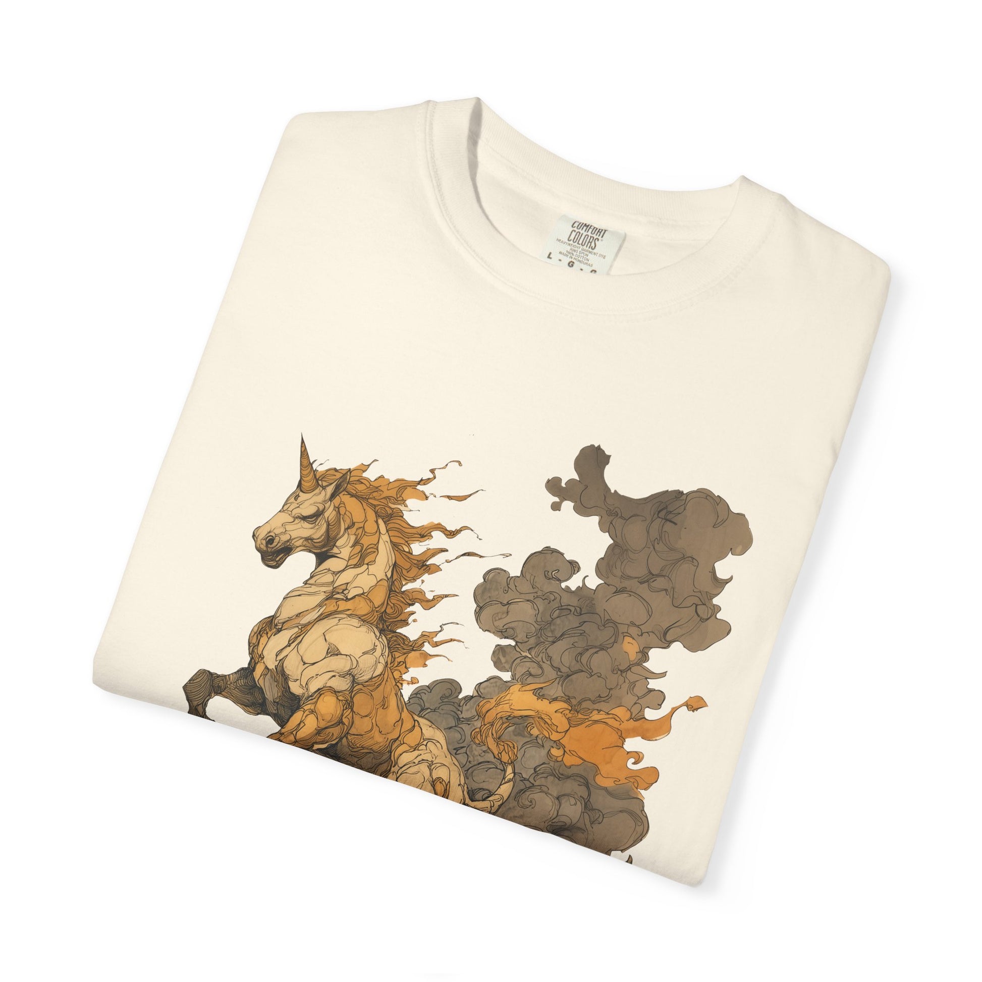 Tulpar gallops out of smoke and fire, bold and alive. This tee embodies unchained energy and mythic rebellion. Ride flames, wear legend.