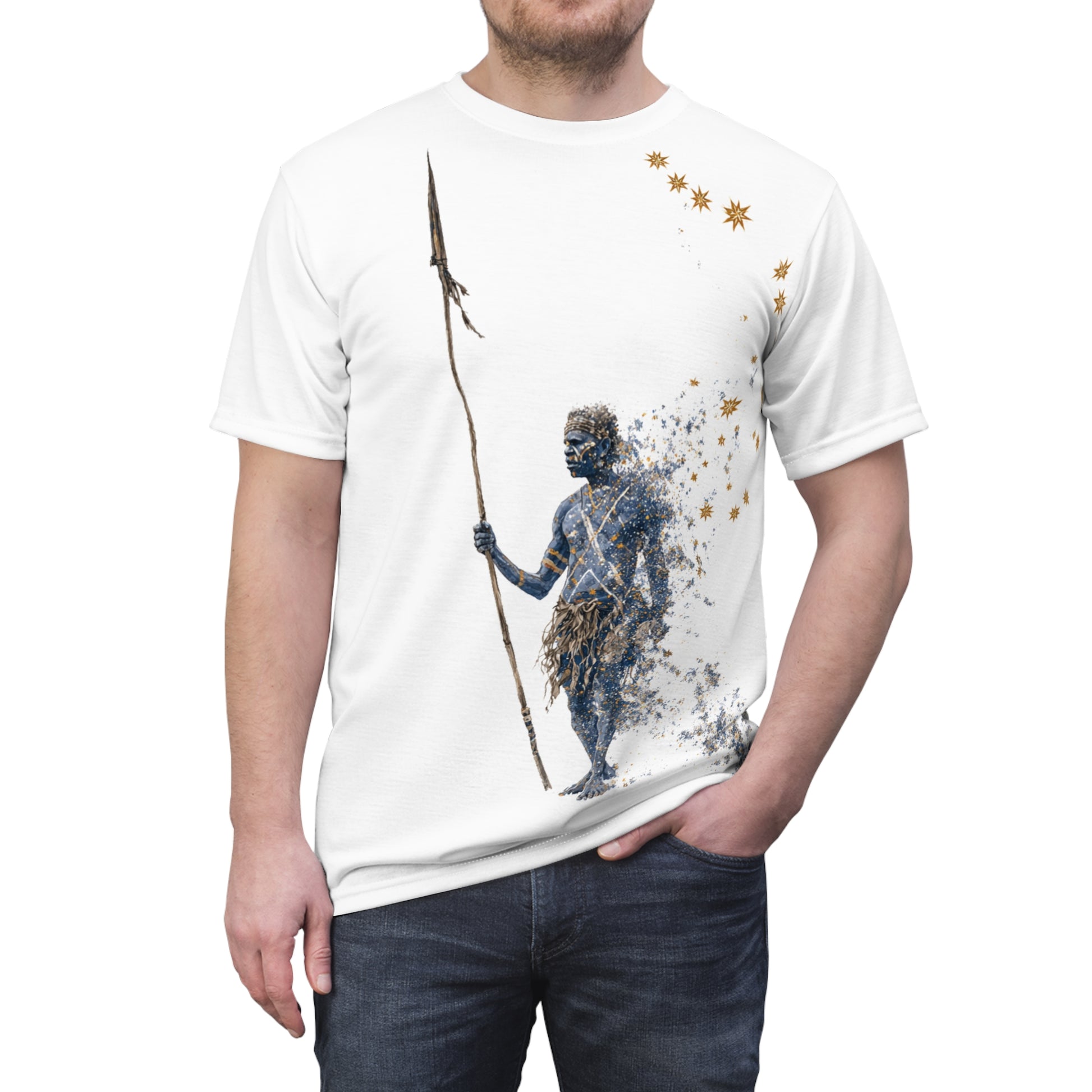 The Pemulwuy tee honors the legendary Aboriginal resistance leader. With powerful detailing and cosmic accents, this shirt embodies resilience and defiance. Crafted for comfort and strength, it’s more than clothing, it’s a symbol of unyielding spirit.