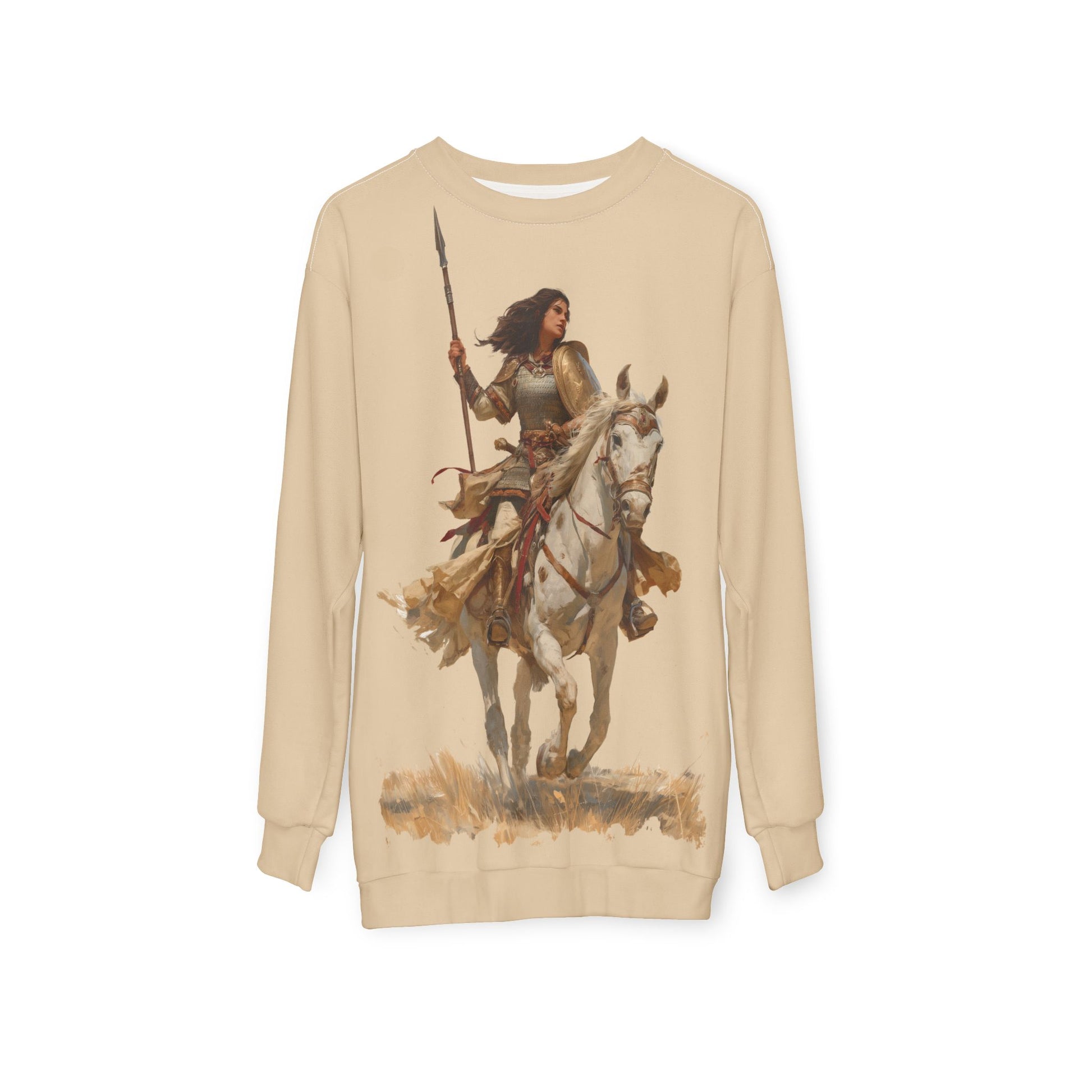 This sweatshirt rides with the fearless energy of a Amage, Sarmatian Queen on horseback. Wrapped in neutral tones, it exudes strength, legacy, and confidence that refuses to bow. More than a cozy layer, it's an emblem of resistance and authority. Too bold to ignore, it commands the streets with effortless power.