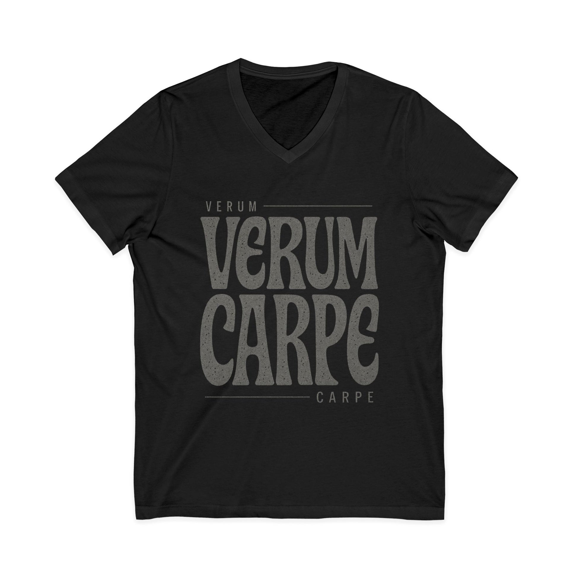 Carved words, carved will. The Seize the Truth V-Neck Tee takes Latin grit, Verum Carpe and drops it in stone-cut typography. Minimalist design, maximum force, a clean black tee that speaks louder than loud prints. Statement gear for the sharp-minded wave makers.